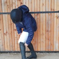 The beautiful Royal Navy that is the base of Via Equines colour is throughout the Elite Coaches jacket  consistent with the zippers right to the hood . The shield sits neatly on the chest . With super pockets also to ensure you keep those hands cosy on the colder days .